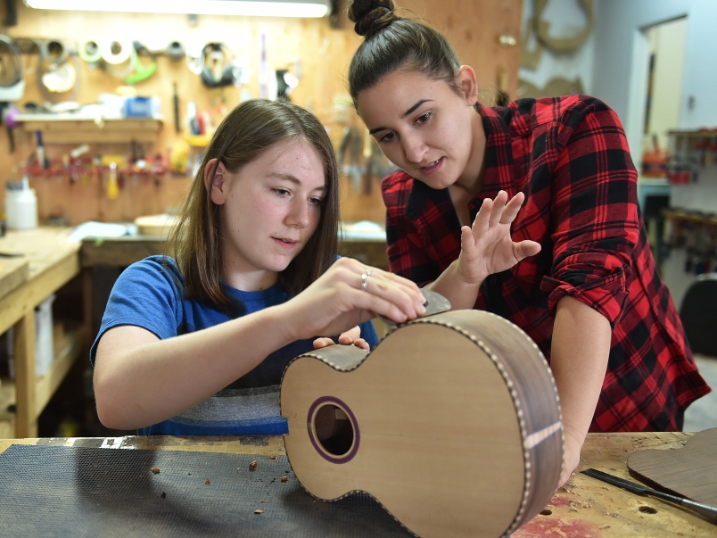 Meredith Coloma is a luthier. She meticulously handcrafts her instruments, shaping British Columbian wood into magnificent stringed boxes of expression. Side-by-side with students, Coloma teaches her fine skills and shares her experiences. It was in one of her building classes where she met Shaw Saltzberg. He asked Coloma what was next on the young and experienced luthier’s list of aspirations...